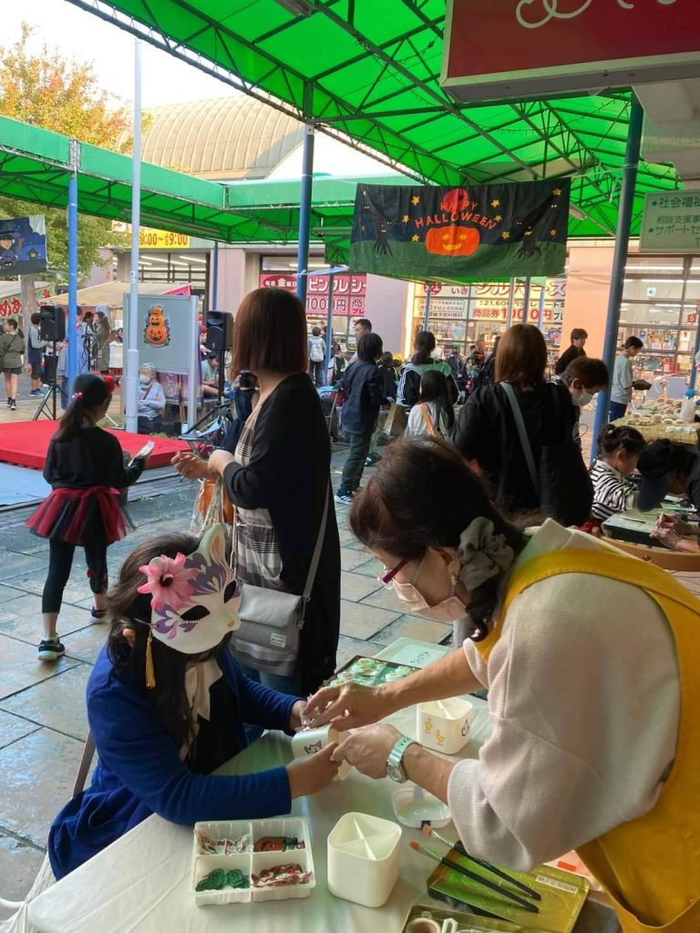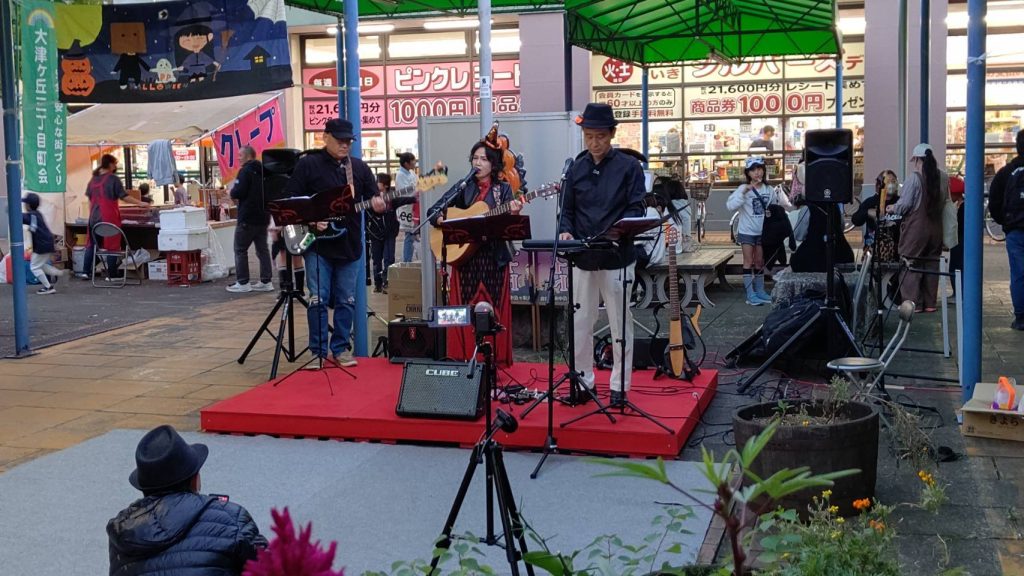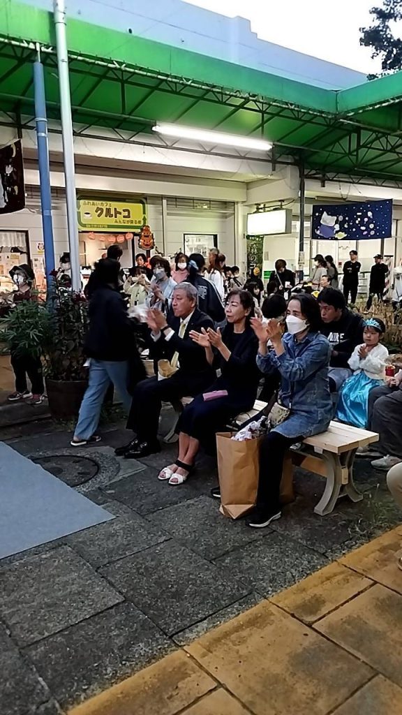 ハロウィンまつり:大津ヶ丘中央商店会(2023年10月28日) 2023年11月1日 最終更新日時 : 2023年11月1日 kazakita-furu 児童・大人のダンス、一小のワークショップ、近隣農家の野菜販売、近くのデイサービス利用者の仮装、ライブ演奏などなど、日常が戻ってきた感じで、にぎやかな楽しいイベントでした。